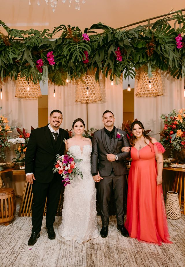 "Meus amados . Que nunca faltem gestos de cuidado, palavras de carinho e a certeza de que escolheram um ao outro todos os dias. O casamento é feito de construção diária, e sei que vocês têm a força e a doçura necessárias para trilhar esse caminho. Que os sonhos de vocês se entrelacem, e que o amor que os trouxe até aqui seja sempre a base de tudo. Amo vcs.